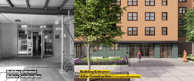 At Taft Rehabs in Harlem, Resident Association President Elaine Livingston reflected on the process after the site’s PACT deal closed: “Residents have been planning for this project through many meetings and conversations over the past three years, and we are excited to now see the transformation we have been working towards. Our residents deserve this change, and we are looking forward to the investment in our apartments, buildings, and community, as well as continuing to work with the PACT team and NYCHA on what’s to come.”