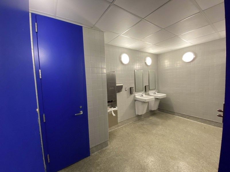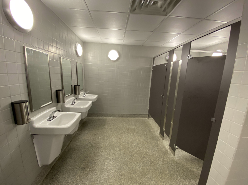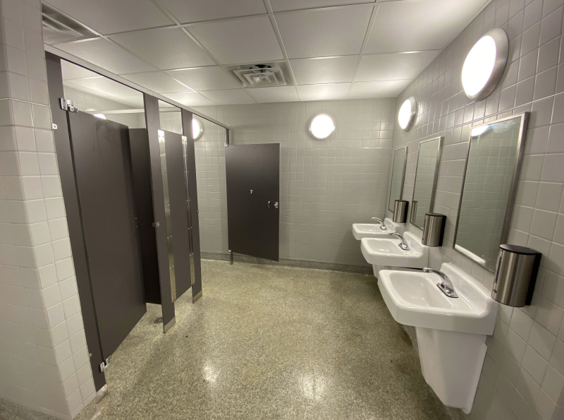 Newly remodeled bathrooms at Ethel Battle Velez Community Center.
