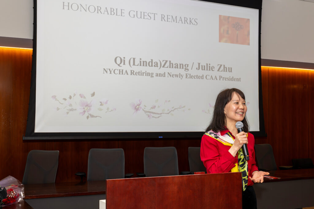 NYCHA’s Chinese-American Association (CAA) marked this year’s Lunar New Year celebration with all the customary fun, energy, and community spirit it does every year. But this year’s gathering carried added significance: it was also the moment of the Association’s presidential transition, as longtime CAA leader Linda Zhang passed the role to her successor, incoming President Julie Zhu — only the third holder of the honor in the organization’s history.
