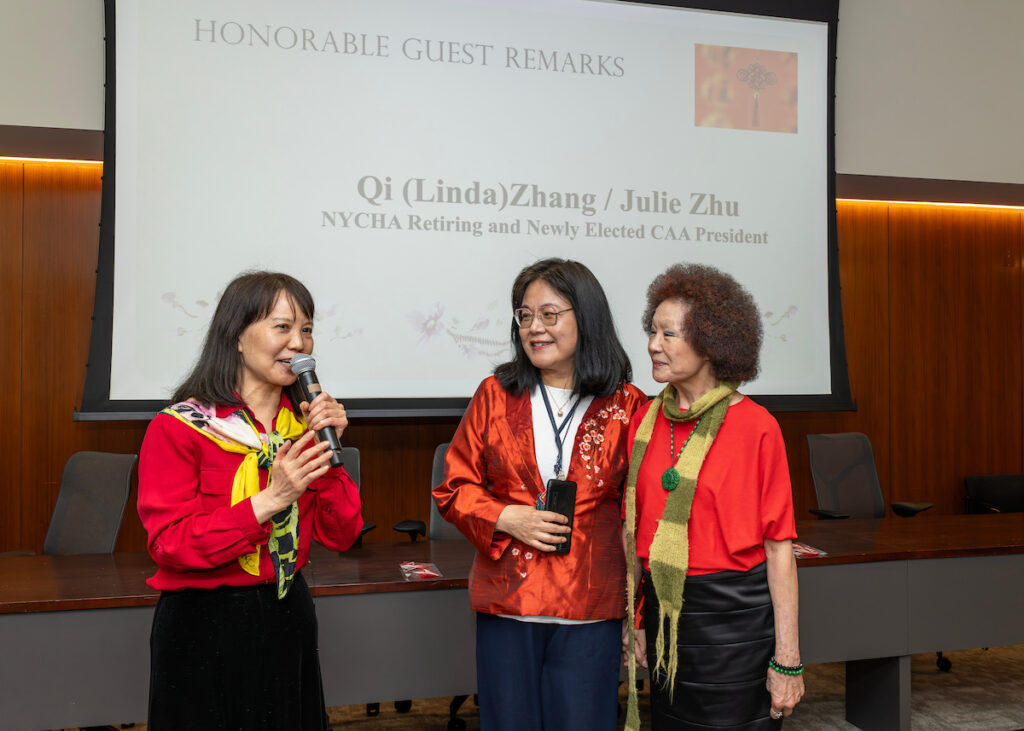 This year’s Lunar New Year celebration was thus both a culmination and a new beginning — a moment where the CAA’s past and future leadership came together at a single celebration. In addition to Ms. Zhang and Ms. Zhu, the CAA’s founding president, Nancy Lam, was also present for the transition, marking the very first time all three presidents had been together at one event.