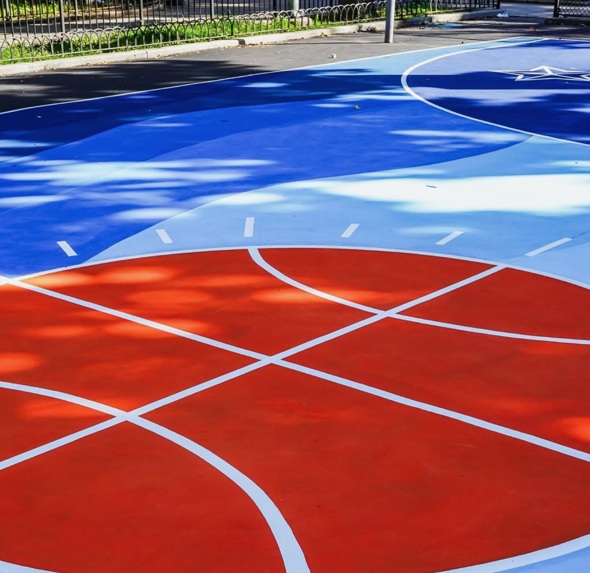 The artistic representation adorning the court is one of the host of improvements to open spaces recently completed at the Bronx development for residents of all ages to enjoy. Other recreation enhancements include two renovated playgrounds and an accessible fitness zone.