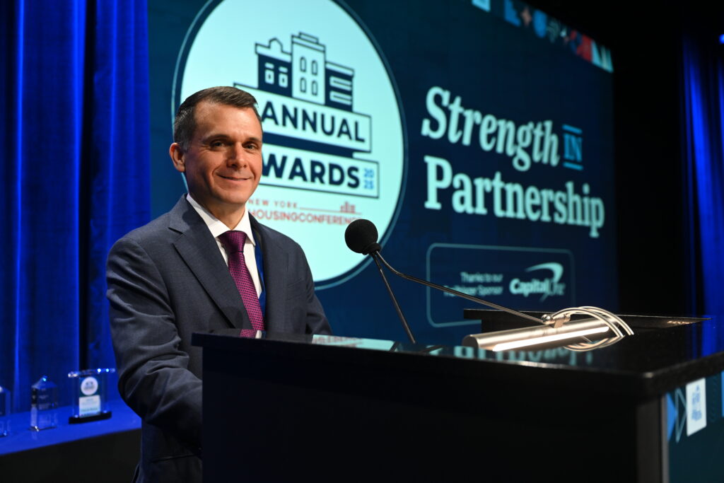 Executive Vice President and Chief Real Estate Officer Jonathan Gouveia accepted the New York Housing Conference’s Public Service Award on behalf of REDD. (courtesy of Christopher Pope, NYHC)